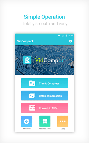 VidCompact اپلیکیشن قدرتمند جهت تبدیل فرمت ویدئویی و همچنین فشرده سازی فایل های ویدئویی در سیتم عامل اندروید می باشد.این برنامه توسط تیم قدرتمند و محبوب VideoShow که با بیش از 200 میلیون کاربر ایجاد شده است.VidCompact یک مبدل ویدئویی قدرتمند اما کاملا رایگان است که فایل ها را به راحتی میتواند تغییر فرمت و همچنین فشرده سازی را اعمال کند. این برنامه جدید است، اما به سرعت در حال رشد است و عملکرد بیشتری در آینده خواهد داشت.از دیگر ویژگی های برنامه میتوان به :برش فیلم ها – تغییر نام – فشرده سازی -اشتراک گذاری و…. اشاره کرد.این برنامه تا به الان توانسته است امتیاز 4.4 را به خود اختصاص دهد.پیشنهاد میکنیم این اپلیکیشن فوق العاده را از سرورهای پرسرعت و قدرتمند پنجره سافت دانلود نمایید.