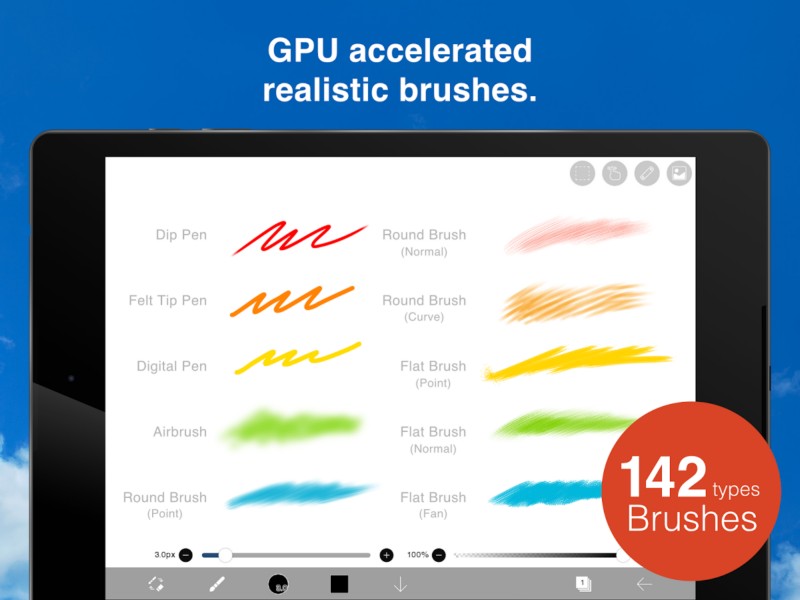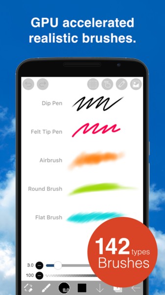 - دسترسی به 142 نوع از ابزار برس ها و قلمو ها